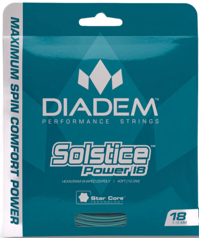 Diadem Solstice Power is a comfortably soft co-poly with a six-pointed star shape. The result is a string that combines a low-friction surface with maximum ball bite. In other words, this string was built for spin - massive spin. Beginner, intermediate and advanced players looking for a comfortable co-poly with pinpoint control have come to the right place.