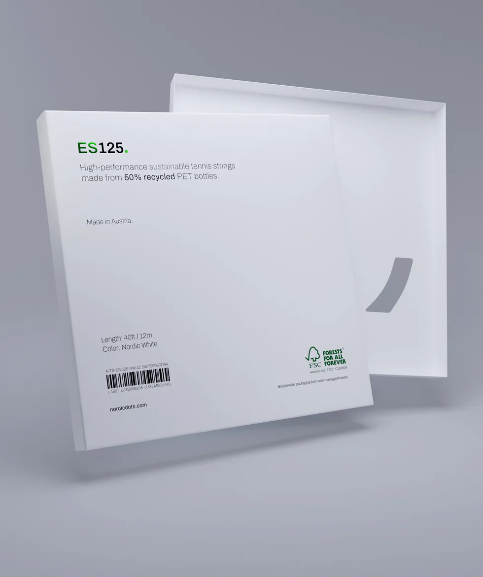*With this string Nordicdots chose not to compromise consistency and tension maintenance of the product. Therefore, recycled materials are at 50% of the string's composition.