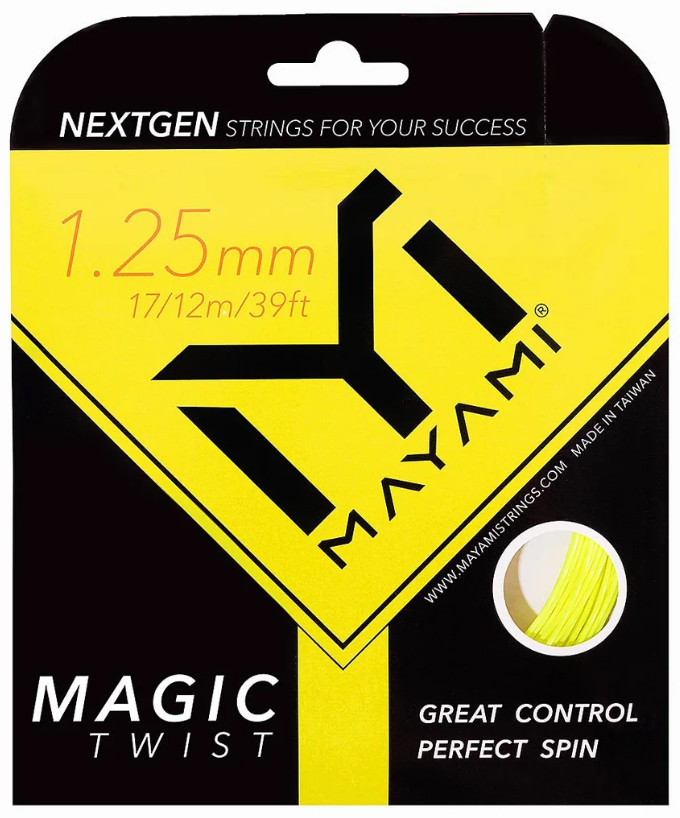 MAYAMI MAGIC TWIST is a remotely breathtaking and brilliant polyester string with a heptagonal twisted profile.