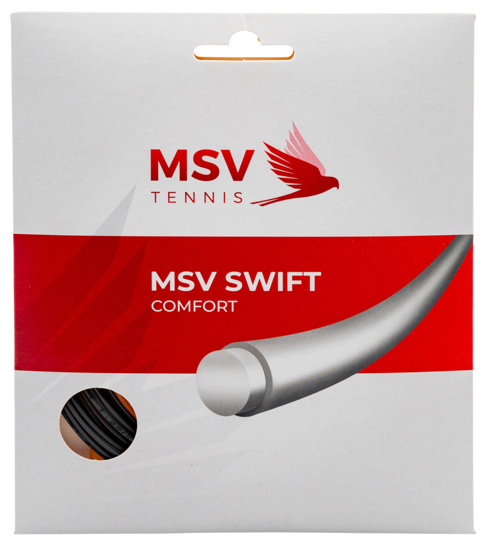 MSV Swift is a monofilament co-polyester string which offers good levels of control for players requiring an arm-friendly string. Swift is a rounded shape, making it ideal for hybrids and also offers above average tension maintenance.