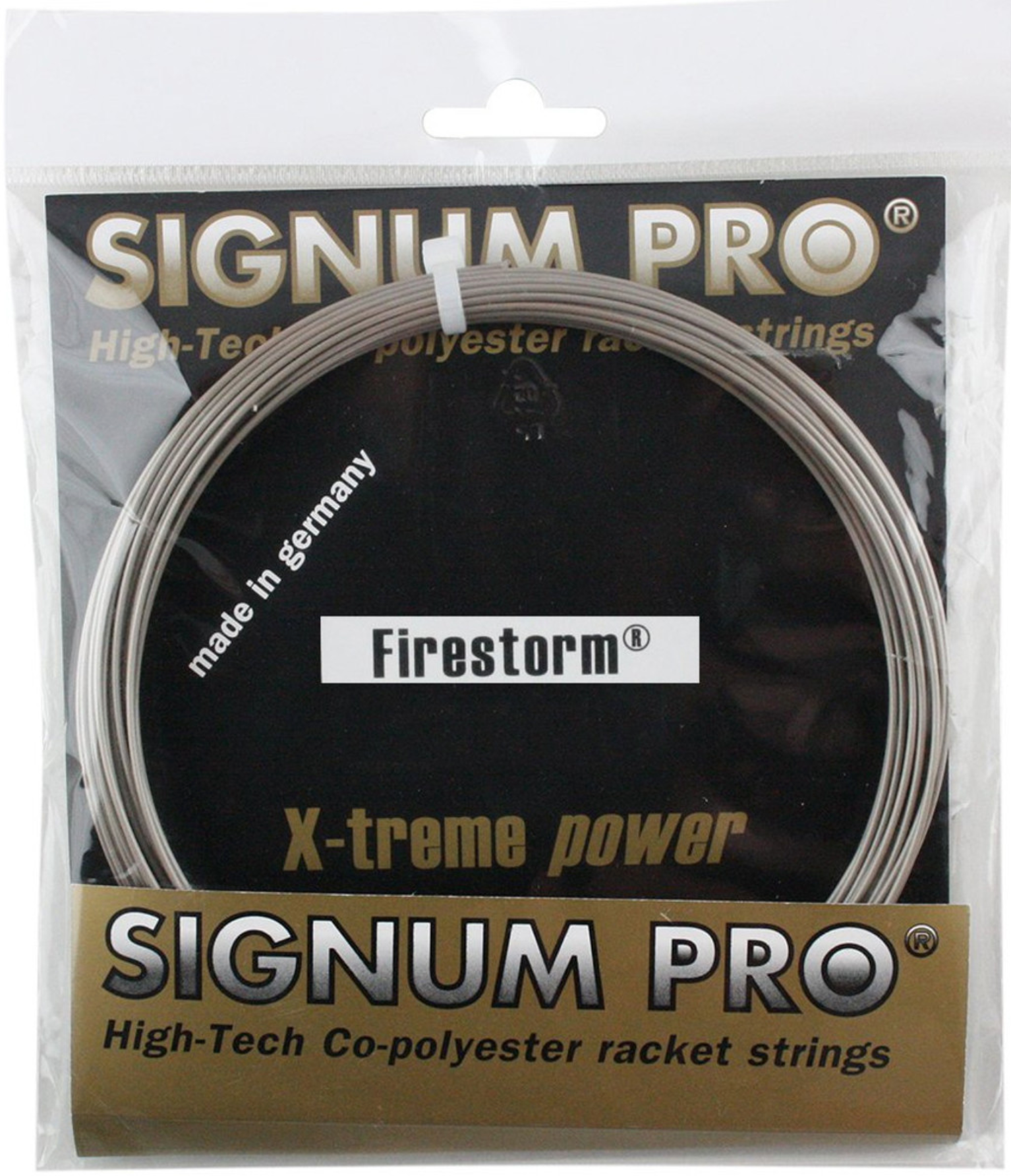 Signum Pro Firestorm is a high-tech co-polyester string which offers maximum durability, together with power, control and tension stability.
