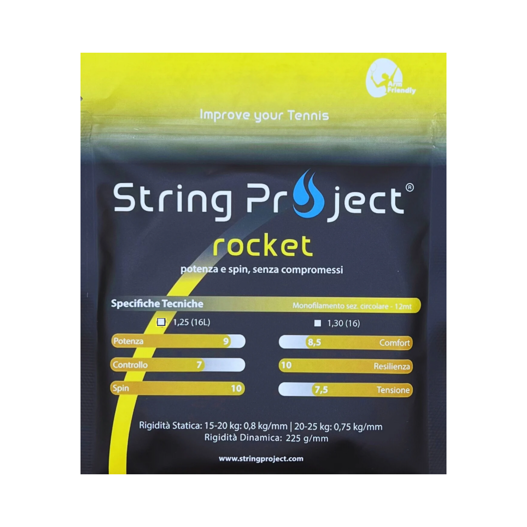 String Project Rocket is a single string designed with soft polyester treated with alpha-olefin and refined with liquid wax.