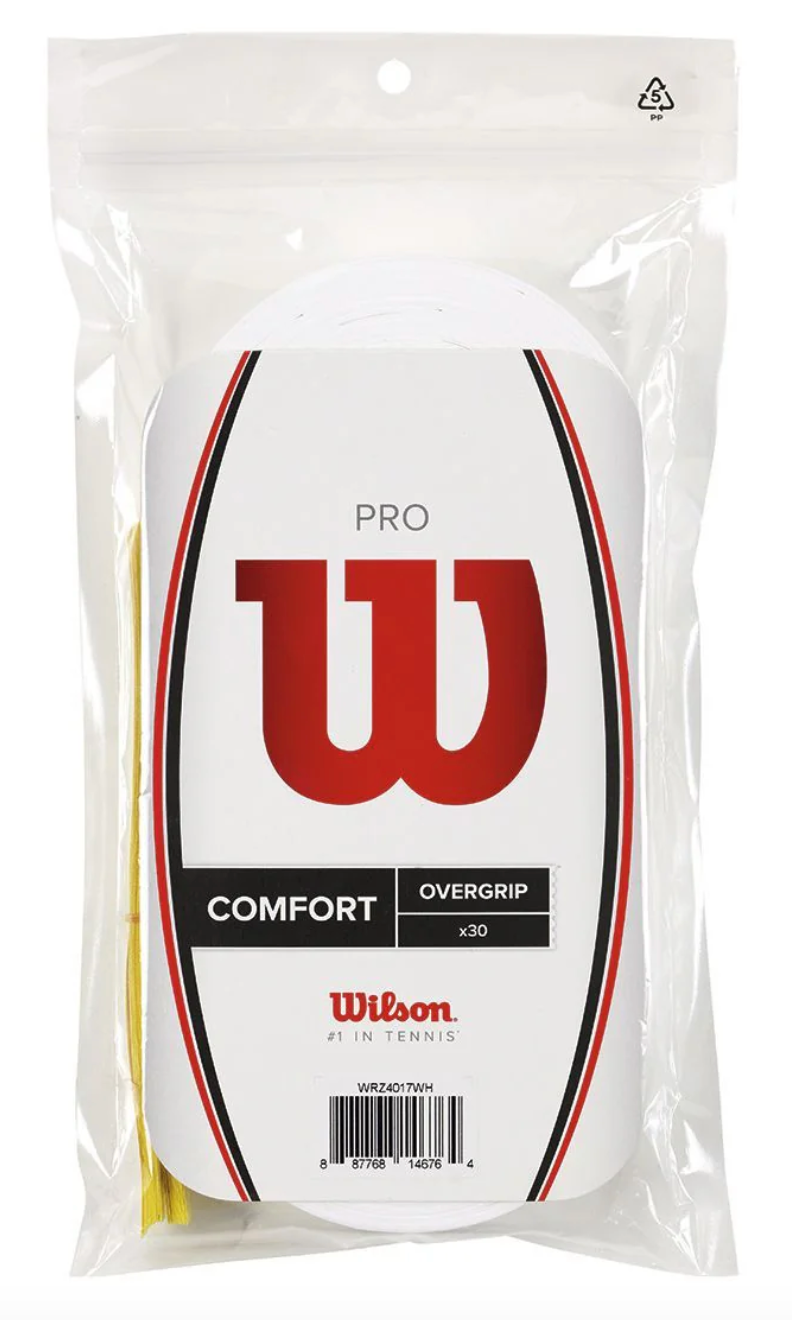Preferred by tennis pros, Wilson Pro is a comfort grip with excellent performance. Thin, tacky and durable, Wilson Pro overgrips are great for any condition. Even after multiple uses, these grips continue to work hard for you and offer great comfort with superior feel. Grips of choice for such players as Roger Federer, Serena Williams and Milos Raonic.